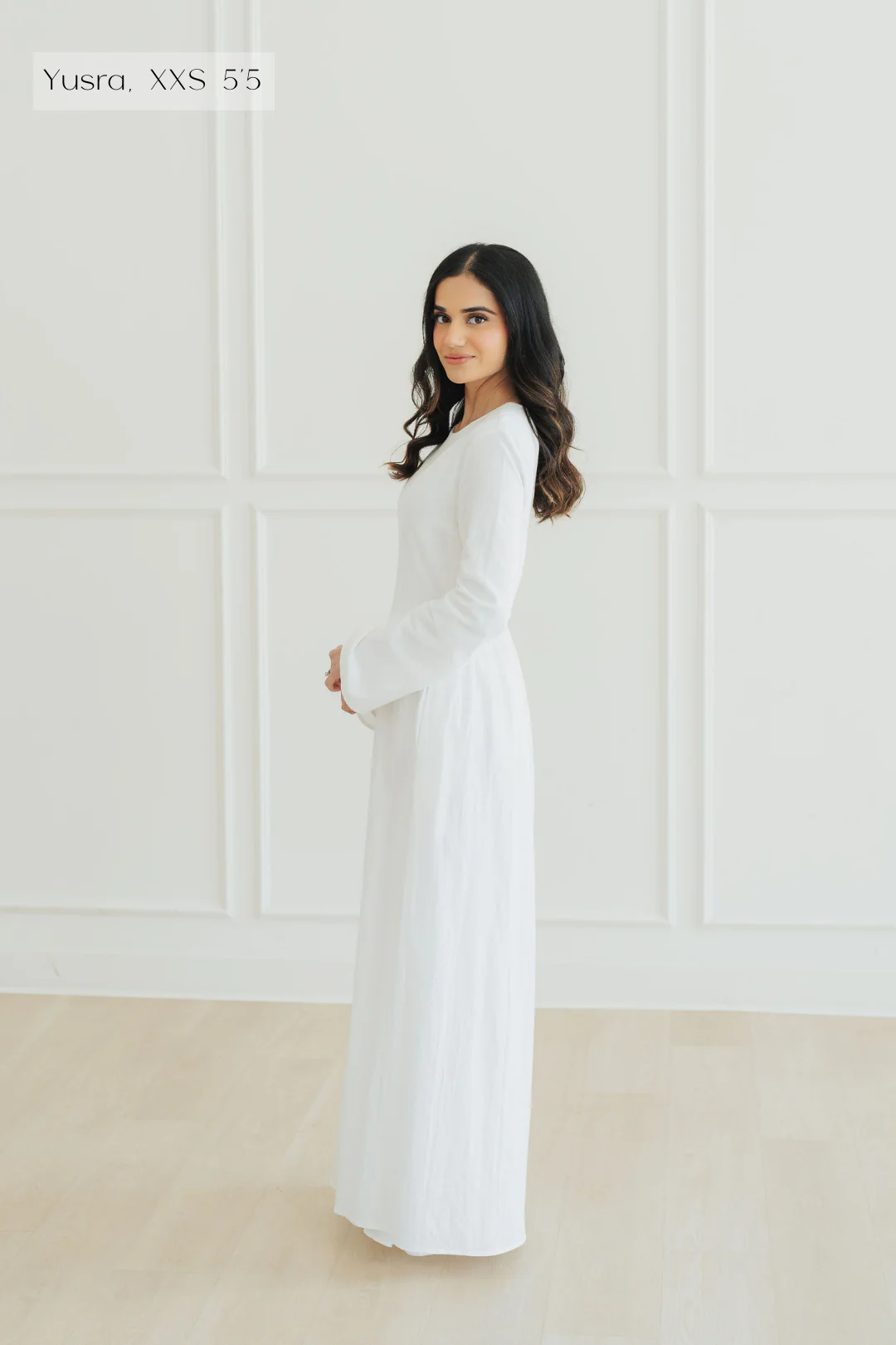Long, flared sleeves and a flowing skirt for effortless elegance